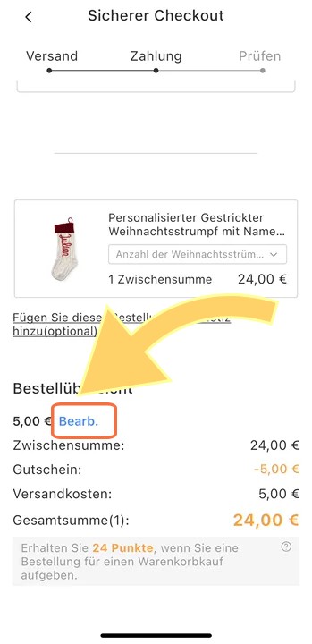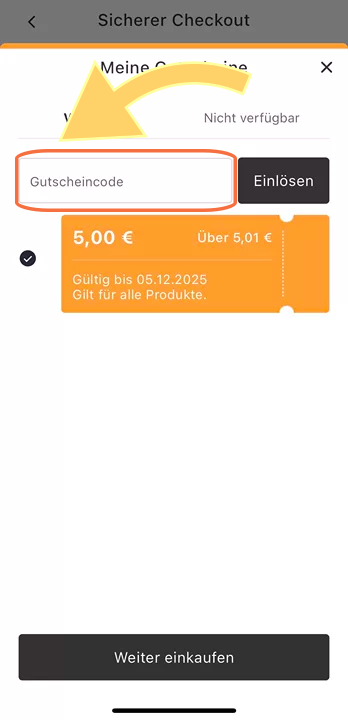 Hinweis: Sie können den Gutscheincode direkt auf der Checkout-Seite eingeben.