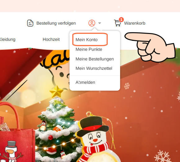 1.Bitte klicken Sie oben rechts auf „Mein Konto“.