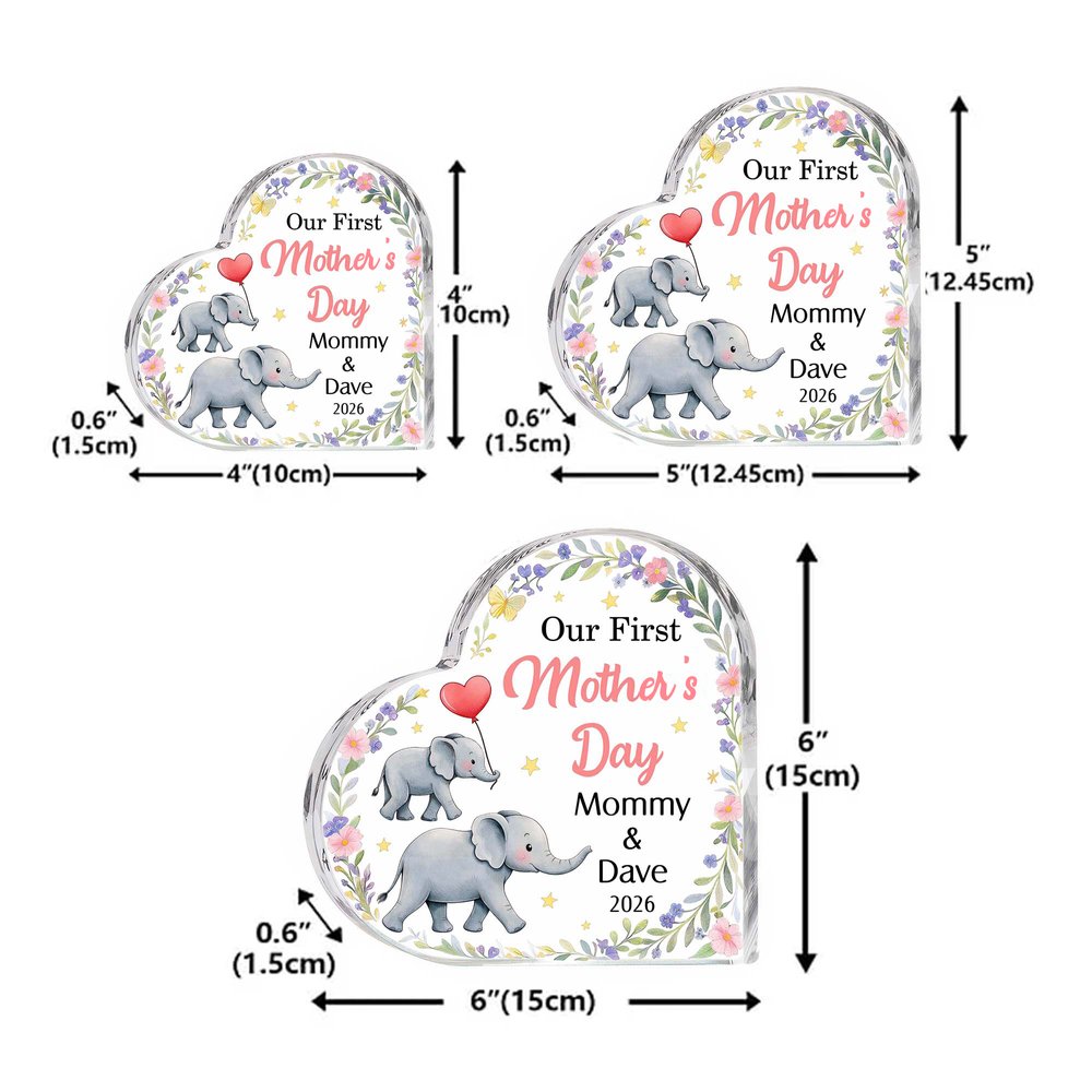 Personalisierte niedliche Mama Baby Elefant floralen Acryl herzförmige Plakette mit Namen Home Decor ersten Muttertag Geschenk für Mama Kind