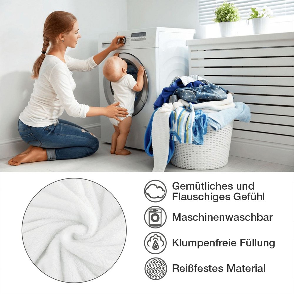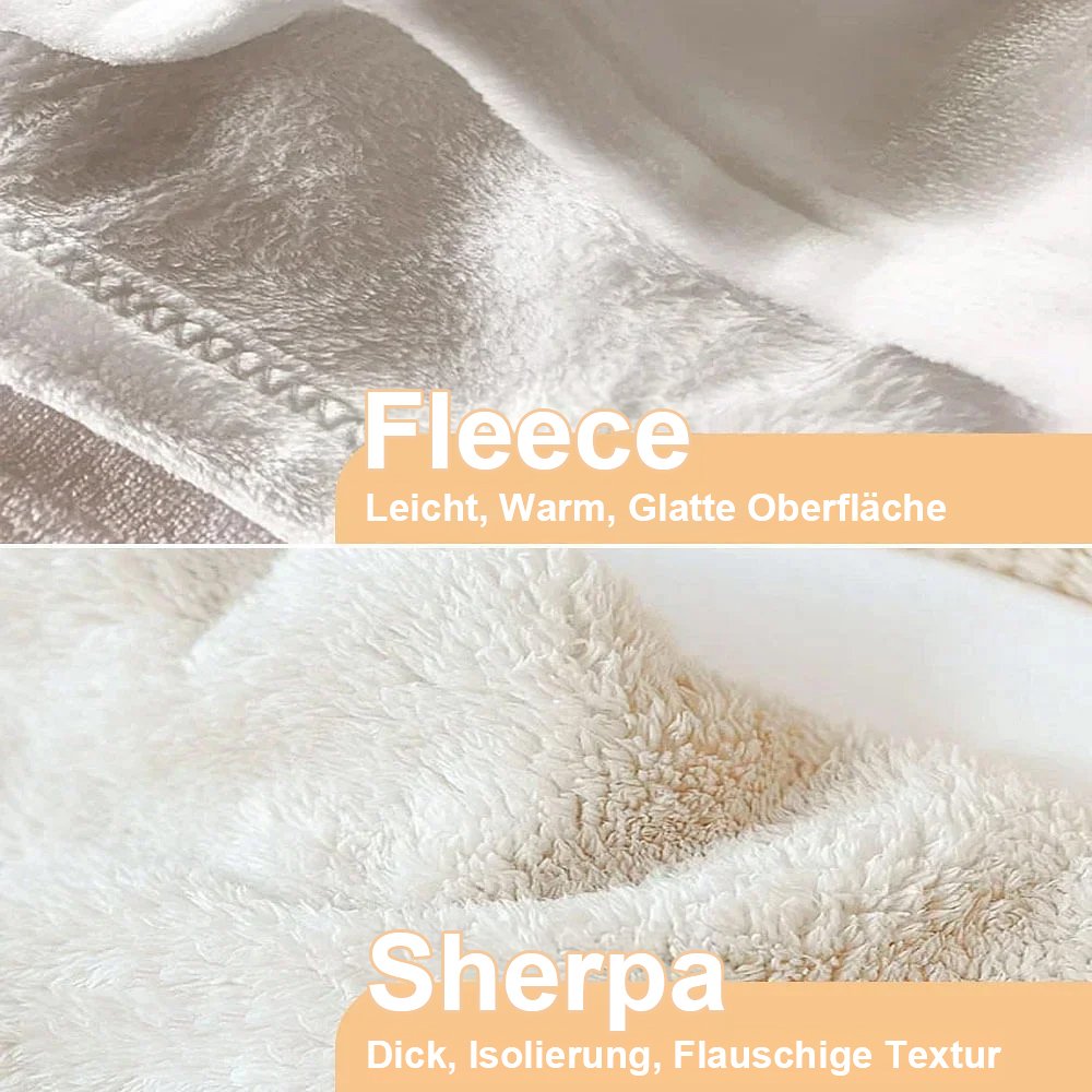 Unsere Decke aus hochwertigem Polyester bietet eine perfekte Kombination aus Weichheit, Wärme und Langlebigkeit. Das leichte, flauschige Fleece-Material ist ideal für den ganzjährigen Gebrauch, während das Sherpa-Futter in den kalten Wintermonaten für besonders kuschelige und wolkenartige Wärme sorgt. Beide Materialien sind maschinenwaschbar, pillingfrei und trocknen schnell, sodass sie sich optimal für den regelmäßigen Einsatz eignen.