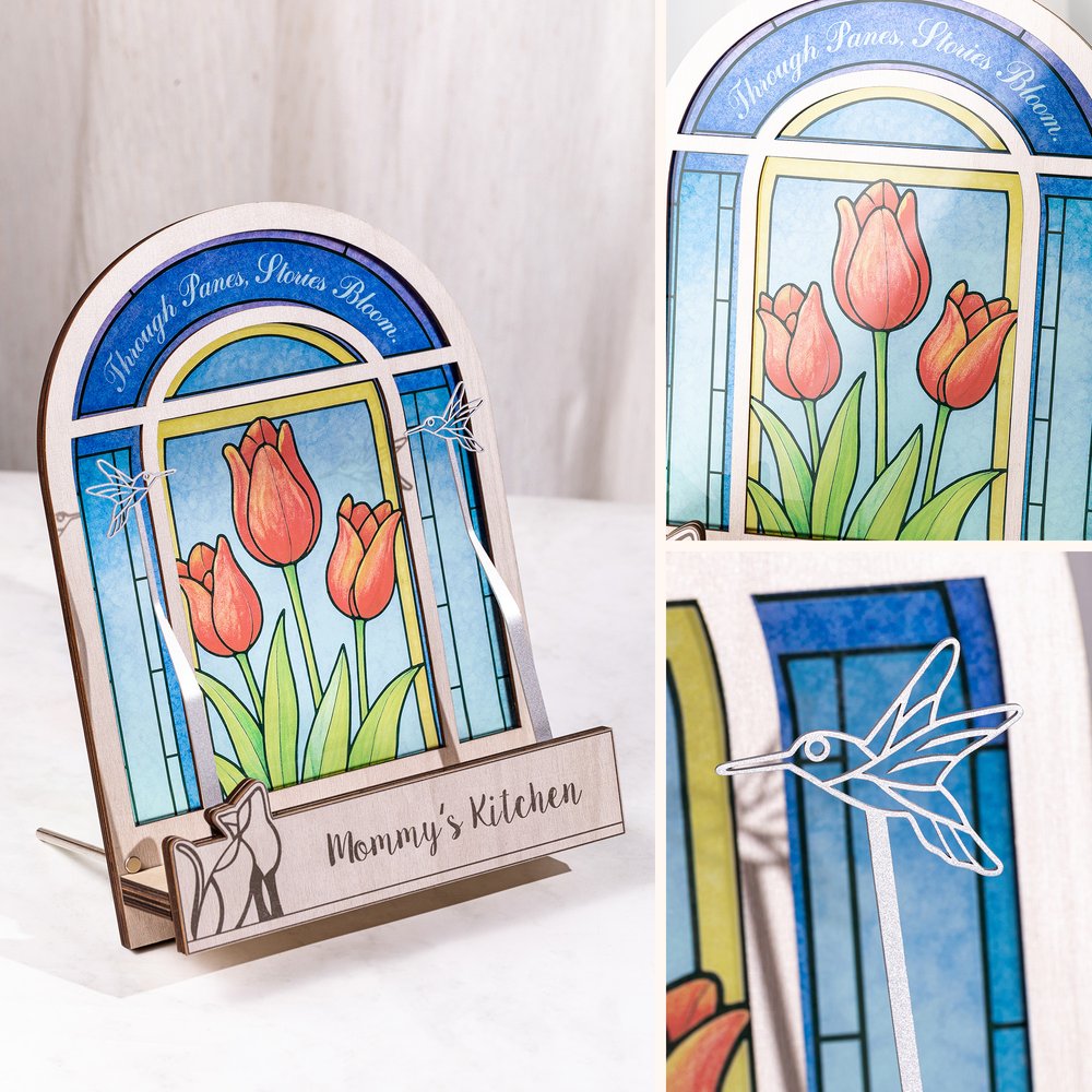 Personalisierte Rose Tulpe Glasmalerei Acryl Kochbuch Stand mit Text Weihnachten Geburtstag Geschenk für Kochen Liebhaber Backen Liebhaber